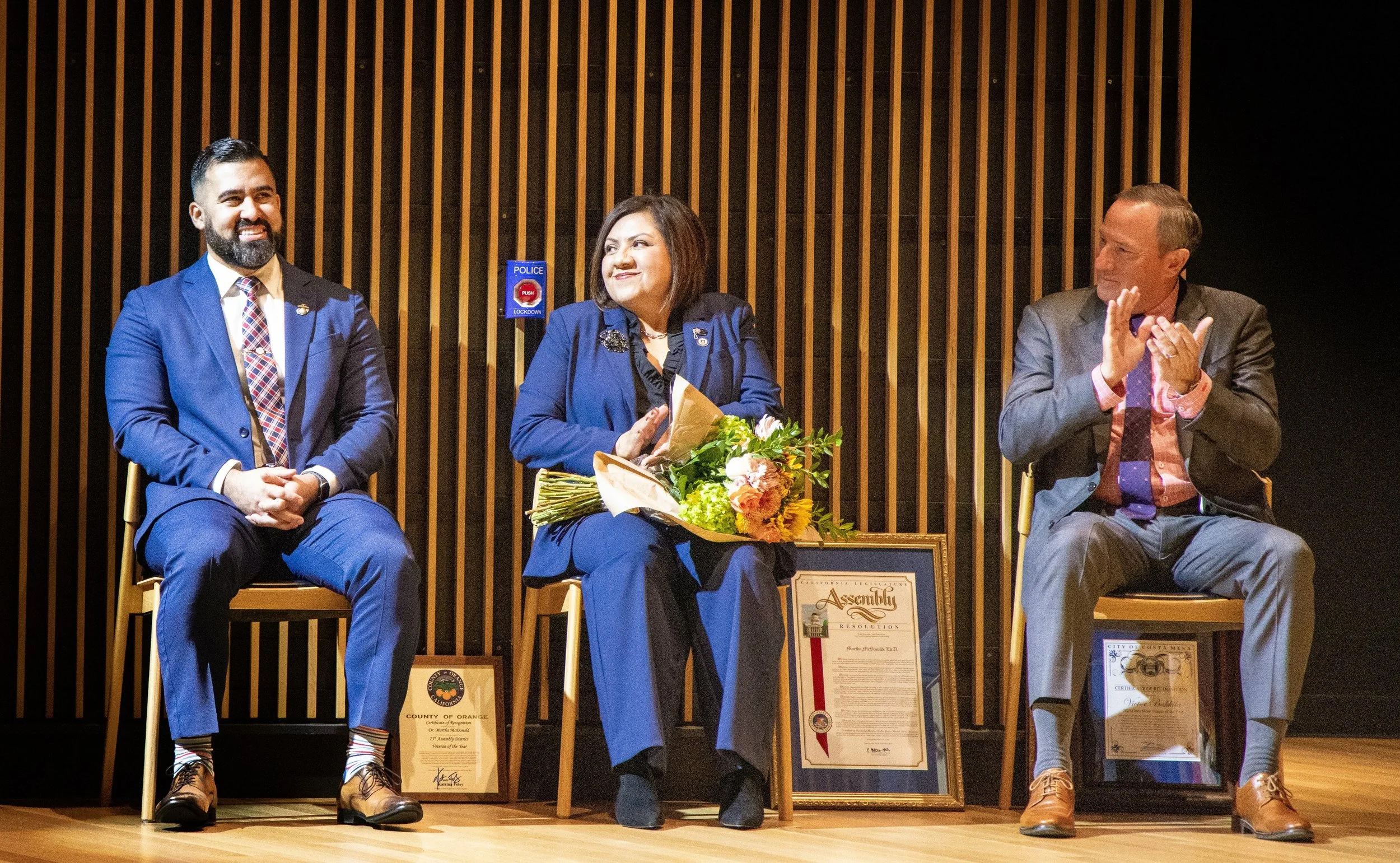VETERANS OF THE YEAR AWARDS Congratulations to Dr. Martha McDonald on receiving the 2024 Irvine Veteran of the Year award! Dr. McDonald was the first woman to complete and teach at the Marine Corps Security Forces School. She currently serves as Vice President of Student Services at Irvine Valley College. We appreciate Dr. McDonald for her service to our nation and dedication to providing Irvine students with outstanding resources. I also would like to congratulate Victor Bakkila from Costa Mesa and Michael Carter from Tustin for their service and achievement. To learn about Veteran Services available in Irvine, click here.